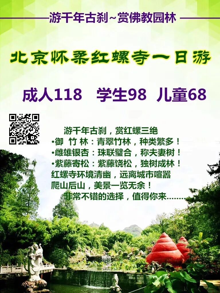 发送:每个人的姓名+电话+身份证号+路线+集合地点 到燕郊高校圈微信YJGXQ6报名。以上线路为燕郊发团含门票及车费、保险、导游、水。
