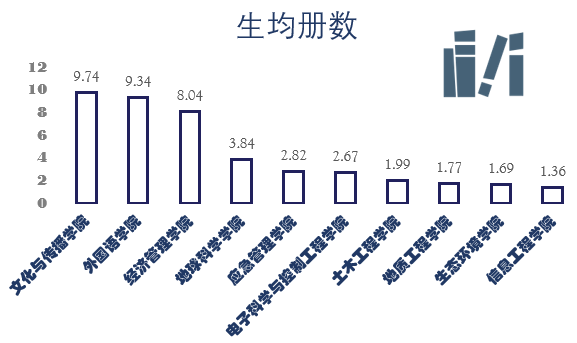 人均册数最多的是文化传播学院,其次就是外国语学院,均册数都超过九本。