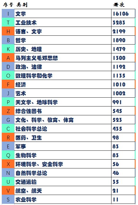 让人震惊的是文学类的借阅册次快要到总借阅量的一半,超过第二位工业技术类图书总借阅量四倍多。