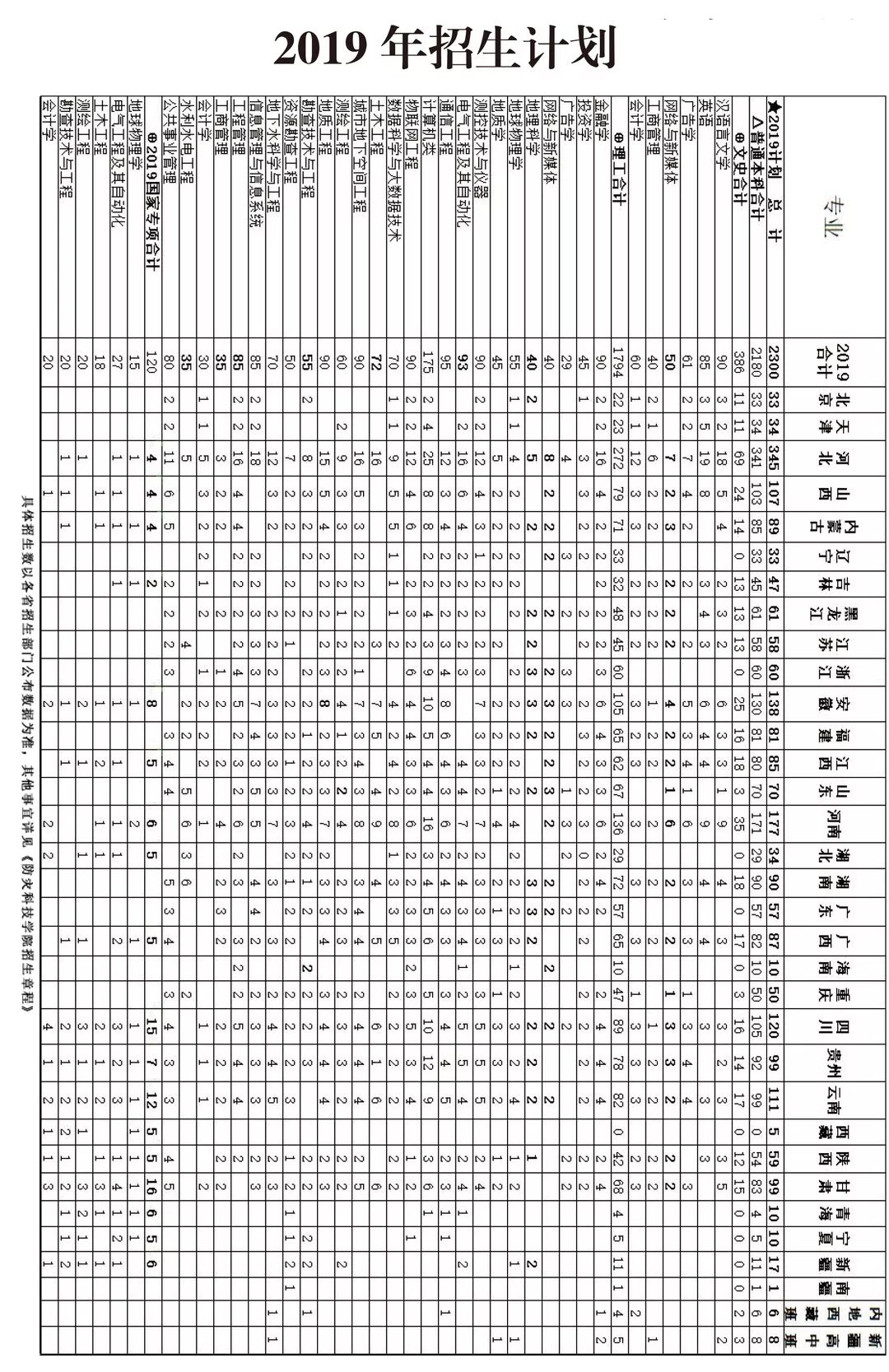 2019年招生计划