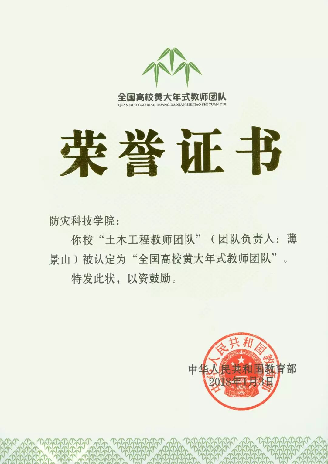 “土木工程教师团队”是教育部首批认定的全国高校黄大年式教师团队